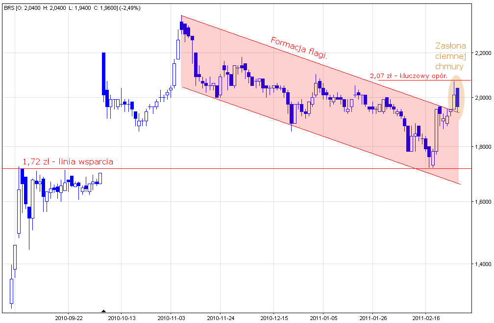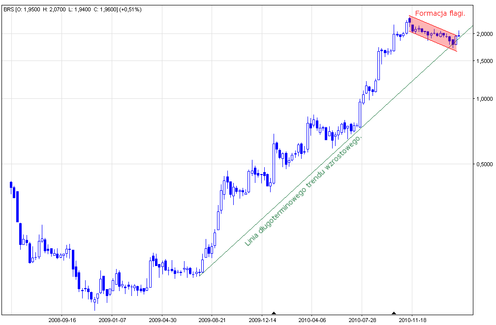 Wsparcia: okolice 1,97 zł – górna linia formacji flagi, 1,72 zł – linia wsparcia.