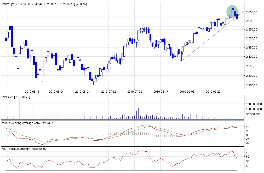 - Analiza Techniczna WIG20 15.10.2010 Piątkowa sesja początkowo przebiegała pod dyktando byków. Do godziny 14:30 indeks wzrósł do poziomu ponad...