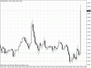 Forex – zagranie nr. 13. Zajęcie długiej pozycji na parze EURUSD. W tym przypadku 13-tka okazała się szczęśliwa.