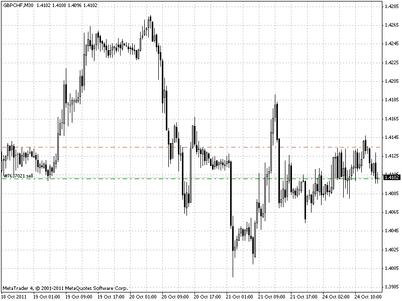 W chwilę po obniżeniu zlecenia obronnego zostało ono zrealizowane po szybkim impulsie wzrostowym.Data i godzina zamknięcia pozycji: 25.10.2011, 7:58