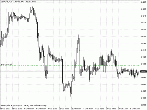 Ze względu na znikomy impuls spadkowy i w konsekwencji ruch boczny na parze GBPCHF zdecydowałem się na obniżenie zlecenia obronnego (stop loss) do poziomu 1,4105.